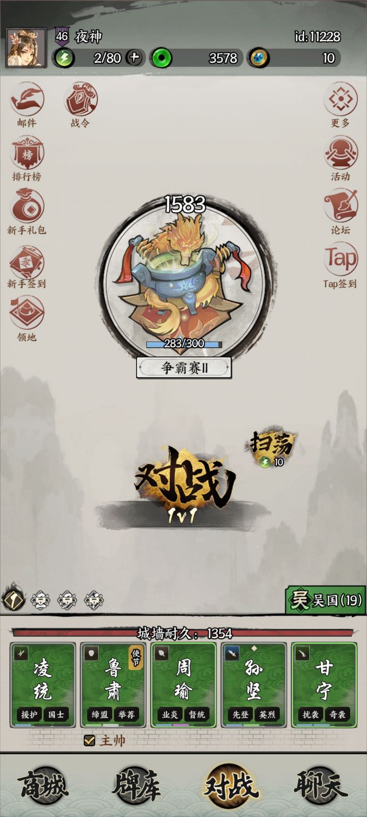 PS: 附图,本人吴国零氪玩家,将星也只有孙坚,大家不用纠结一定要上将星卡了,慢慢养成也别有乐趣。