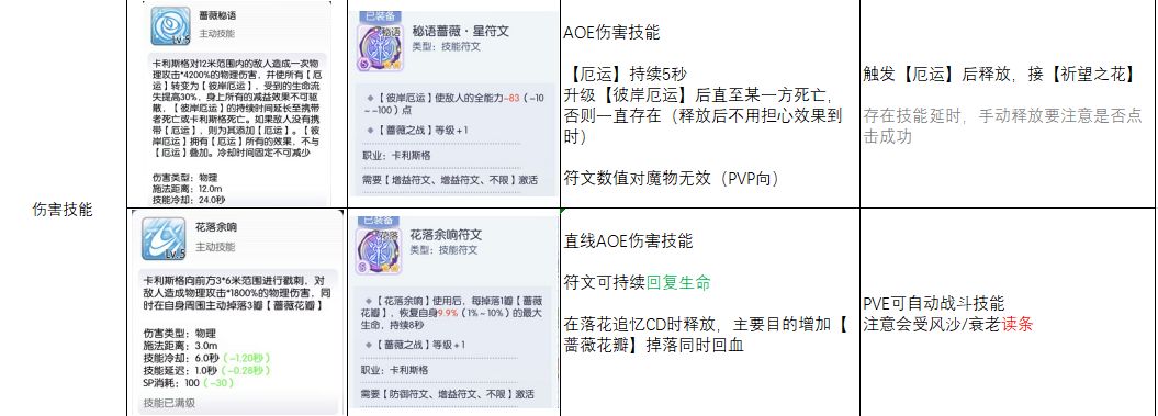 蔷薇秘语:大范围AOE,可以在拾取一次【蔷薇花瓣】后使用,将【厄运】转变为【彼岸厄运】,之后CD好了即可释放