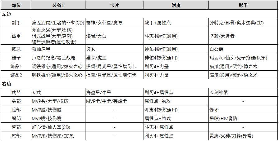 - 此处远古装备以英灵装备推荐,推荐顺序从左往右