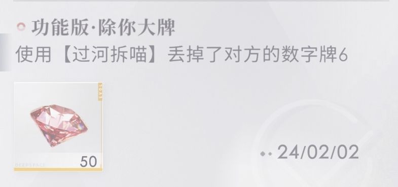 用拆除喵,丢对方一张数字六,(好考运气的成就!)