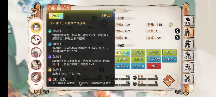 天命很多人说养剑没有,但是要看对那个灵根目前养剑对火系没用其他几个系都能吃加成