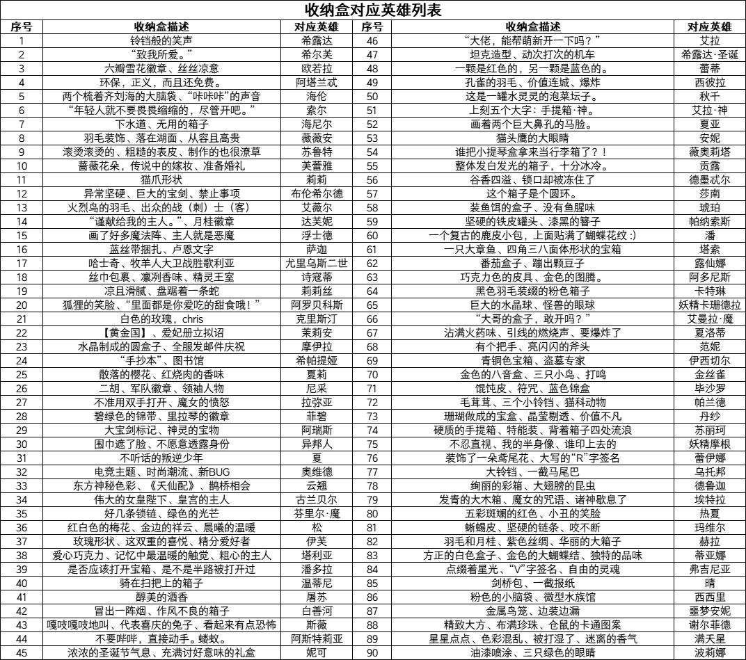 本次带来的是收纳盒开箱对应英雄一览~
