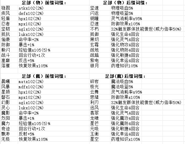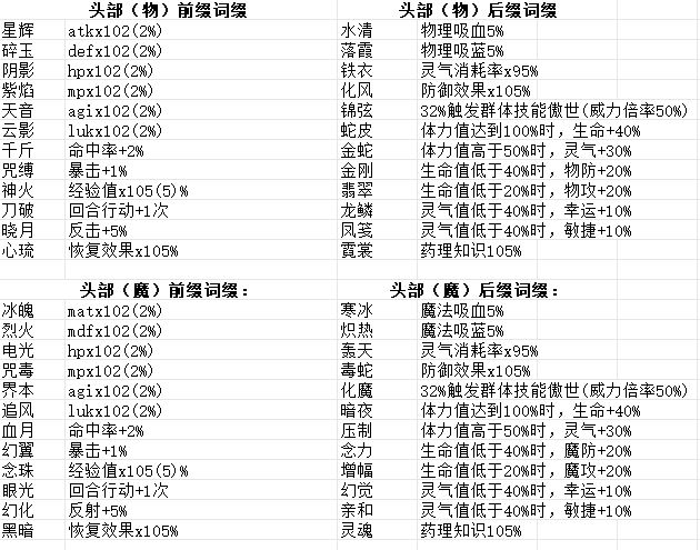 装备词条 完整版