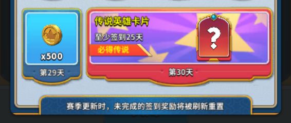 S4新赛季开启期间,每日登录游戏进行签到即可获得赛季签到奖励;签到累积达25天或以上,必得【传说英雄卡片】一张!