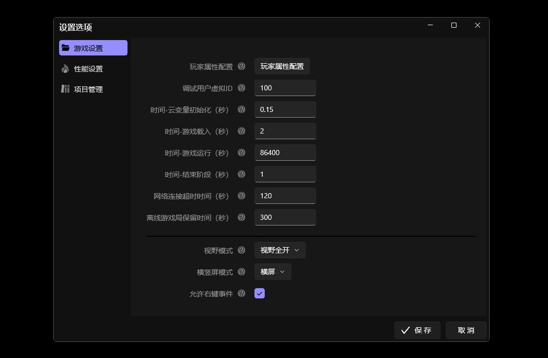 本次更新提供了新的项目设置面板,之前在数据编辑器中隐藏比较深但比较关键的参数都可以在这里进行配置了。