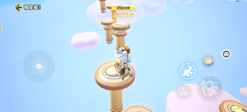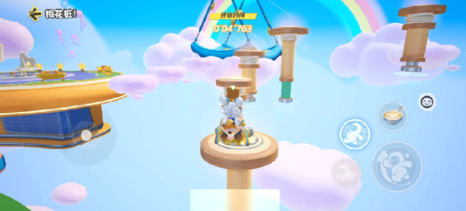 星宝跳上第一根梅花桩后,务必要点击按钮,开始计时,这趟“送面之旅”才算正式开始哦!