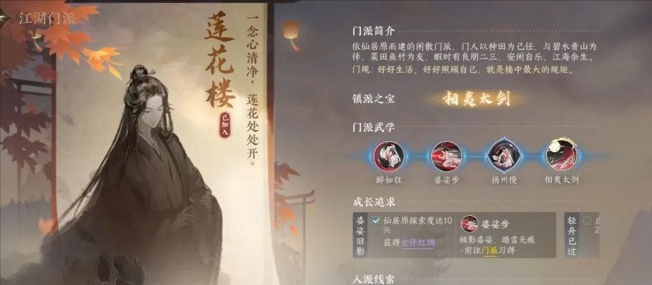 中吉奇遇【仙居莲迹】/加入莲花楼:前置条件:
