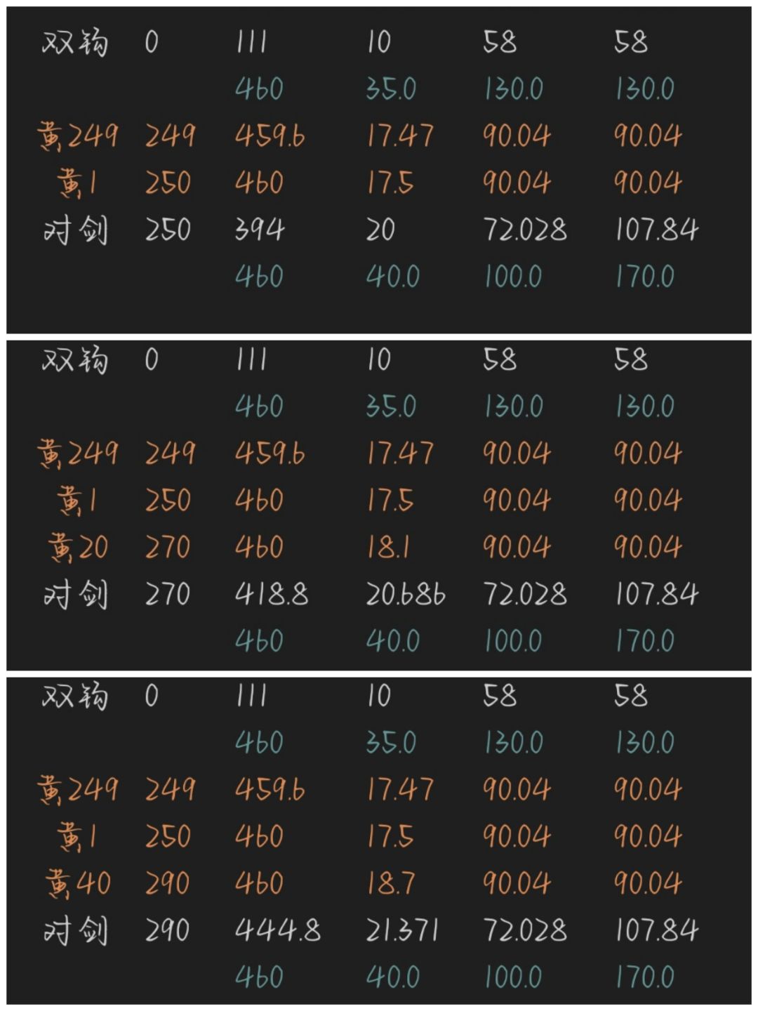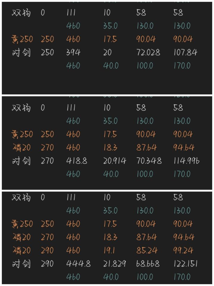 注:黄满伤后再淬,前20淬1.24,再20淬1.3