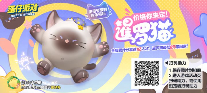 【蛋仔派对】暹罗猫价格我们来定!点击链接一起砍价,邀请5人免费领取眼罩配饰!全服砍价一亿次,暹罗猫6元带回家!
