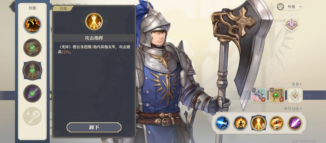 旗子的独立攻击力光环,提升阿坎贝攻击力,助暗影继承更多攻击力。暗影召唤出来后也能吃到光环。相当于一环两吃。11阶技能[骑士的荣誉],可以在阿坎贝行动前套上。