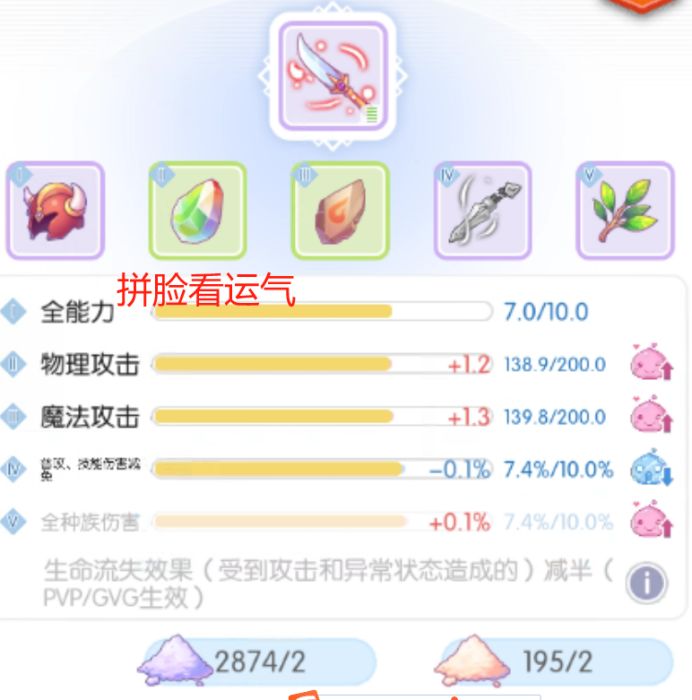 (2) 正提升和负提升总和是明显提升的,比如2个百分比提升+1个物攻降低可保存;或者1升1降的情况下进度低的项是提升的,进度很高的项是降低的;
