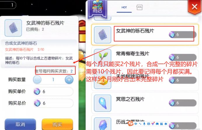 重点在于坚持5个月买商城里的上古遗物典藏礼包,然后每一个月用礼包里的上古遗物神晶兑换2个遗物碎片的残片(仅指虚空无法获得的遗物材料,虚空可获得的遗物残片商店每个月可买3个),5个月后凑满10个残片合成一个完整的遗物碎片。