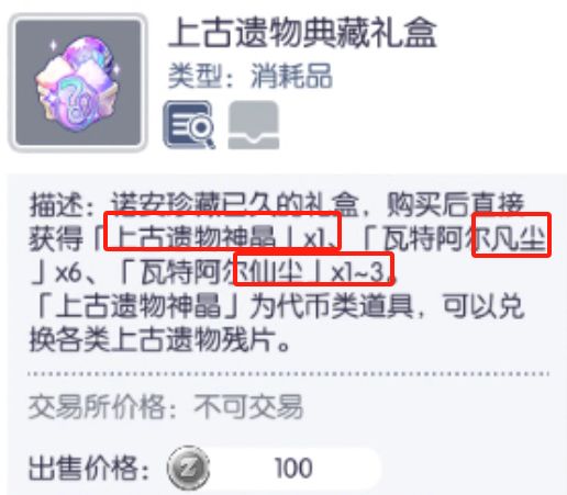 仙尘来源则主要靠氪金购买商店里的 上古遗物典藏礼盒X10(198猫币,个人推荐),或者抽宴扭蛋机,不差钱的氪佬也可以直接购买上古遗物典藏礼盒,又有凡尘又有仙尘还有可以兑换遗物材料的结晶。