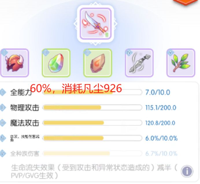 (5) 物攻/魔攻优先级略低于百分比数值,因为后面物攻/魔攻可以靠凡尘刷