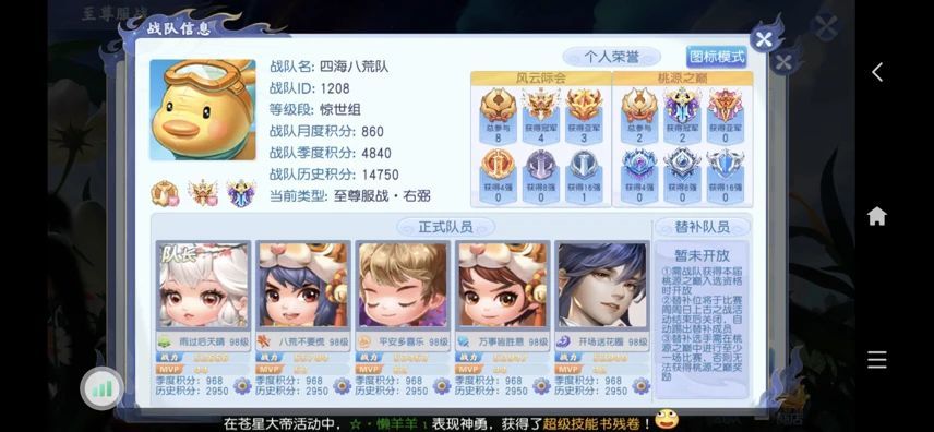 八荒:战绩怎么说呢,我们目前基本没有对手,只有两次服战没有报名或者忘记进。正常都是连冠的。