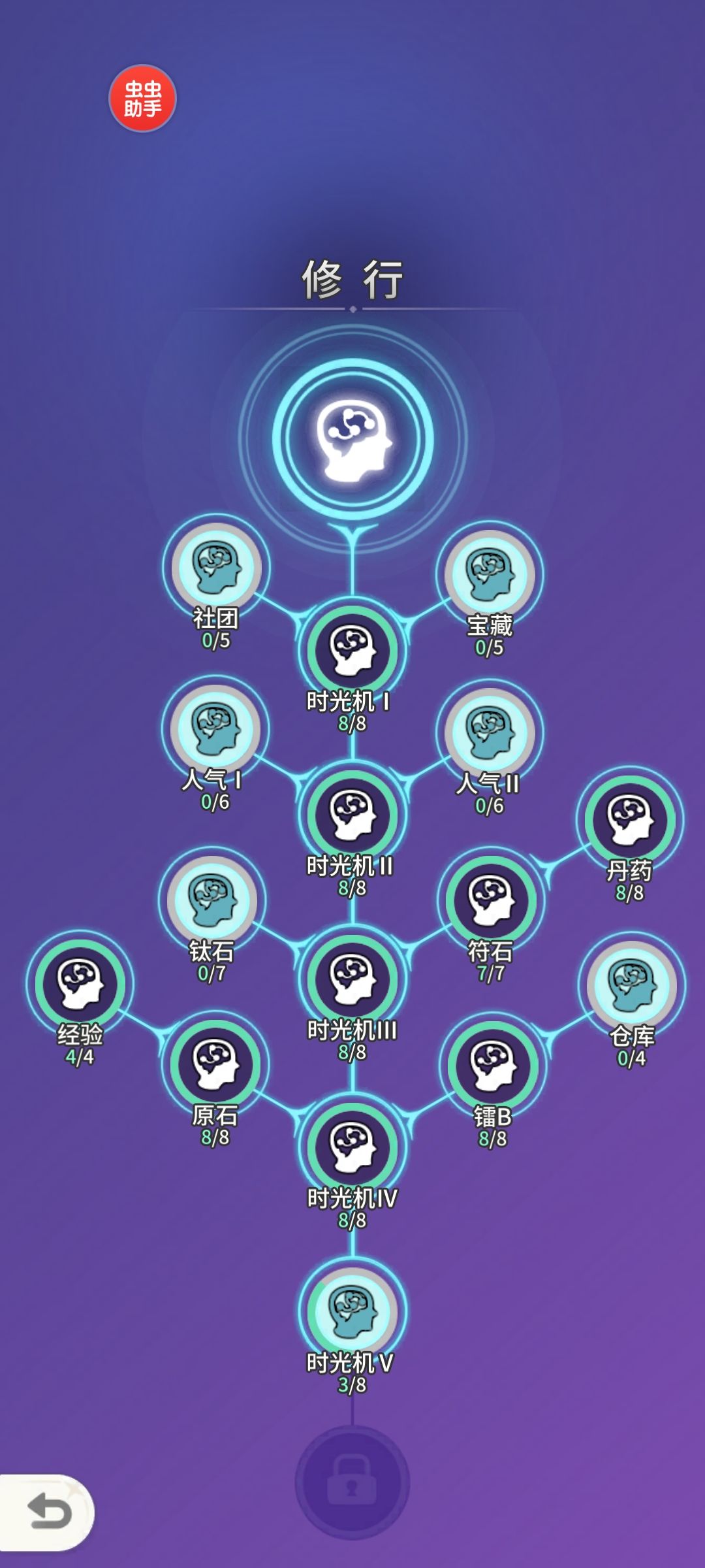 这里推荐点完前三个也就是时光机复制,时光机等级和时光机经验,咱们去点符石开丹药这个支线点满在回来点剩下的时光机四级。