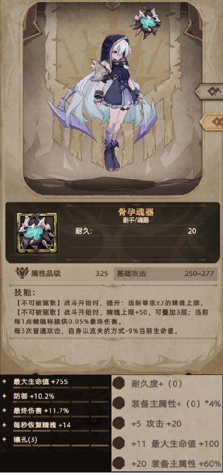 关键词:生命值、防御、最终伤害、精魄恢复、镶孔、自残。