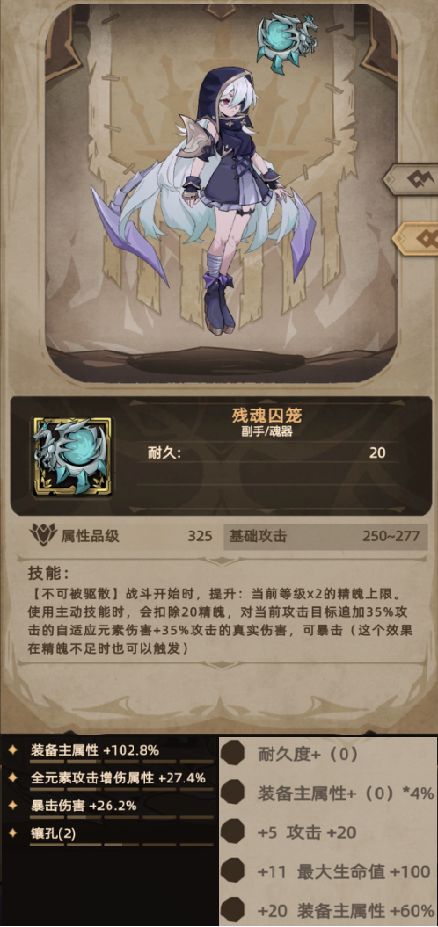 本系列图鉴中,左下方表示装备词条,右下方表示强化属性