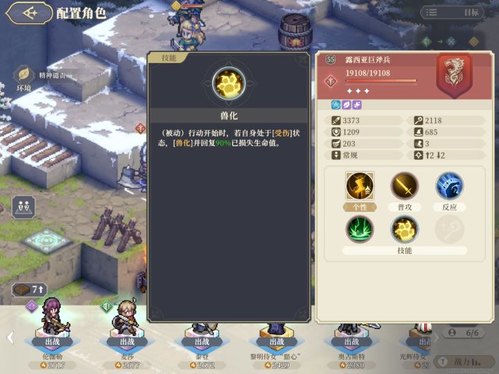 然后各位请看图一,这是一个55级就有接近3400攻击,近两万血条,有兽化技能,并且第一回合能踩到加伤害的先祖之力的敌人,关键是,这不是本关的大boss,只是两个小boss之一。