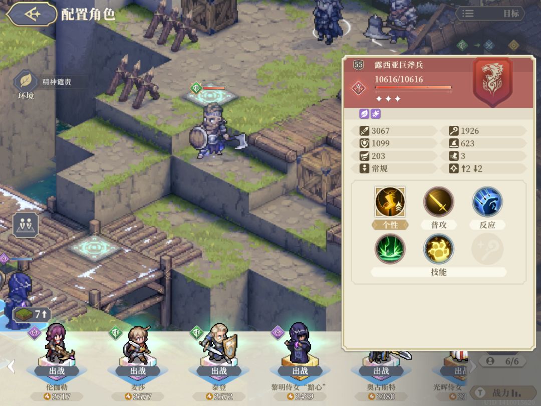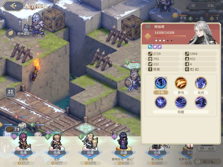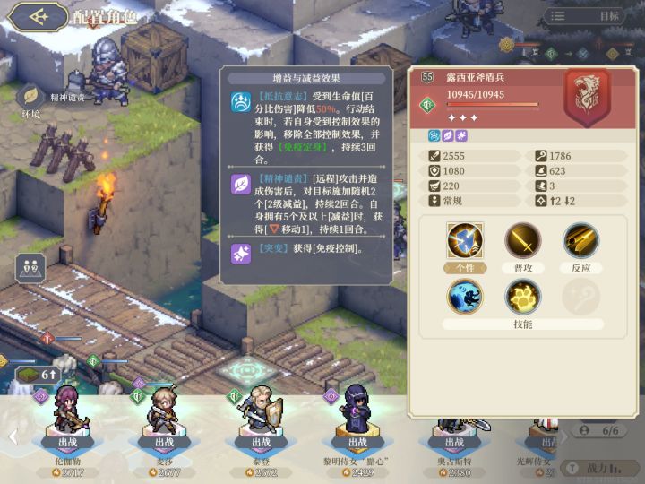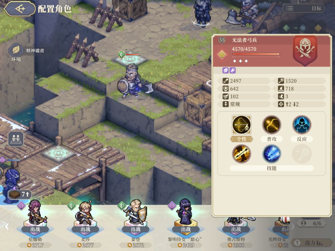 图六,本关设置的突变条件,看着一般,但是注意,是减少45%攻击,不是减少45%伤害,敌方又都在高地,走下来基本上是踩到先祖之力。