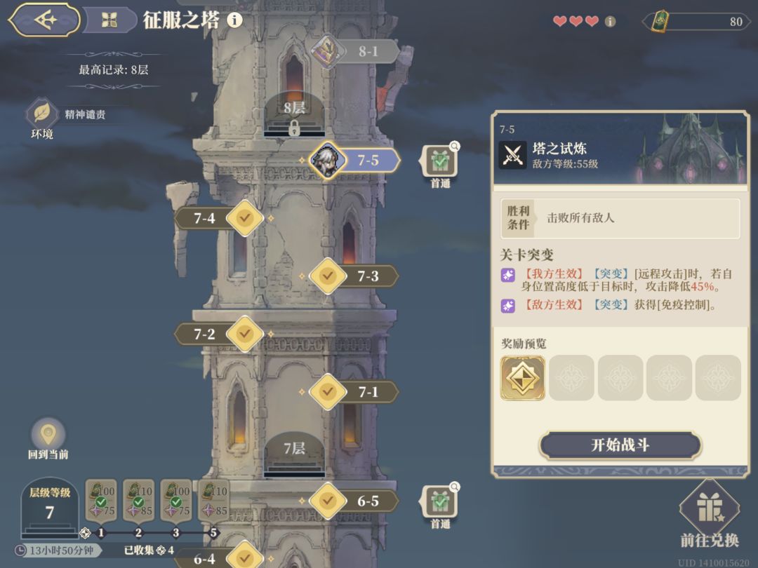 最后,这个是征服之塔,我方过关条件是只能死一个,死两个就重开。