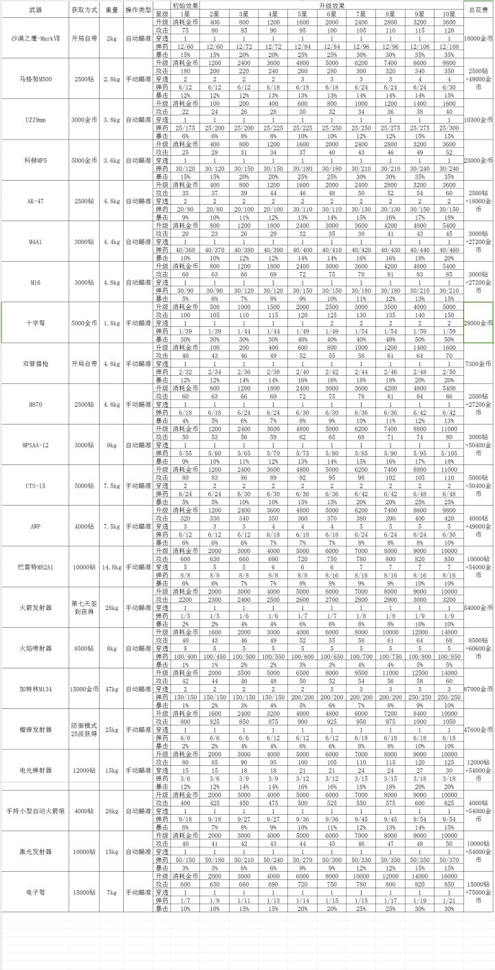 经过8天的努力,终于把所有武器和所有人物都解锁了,这些是整理的武器数据和各关卡僵尸数量数据,可以适当参考,做悬赏和发育可能用的到