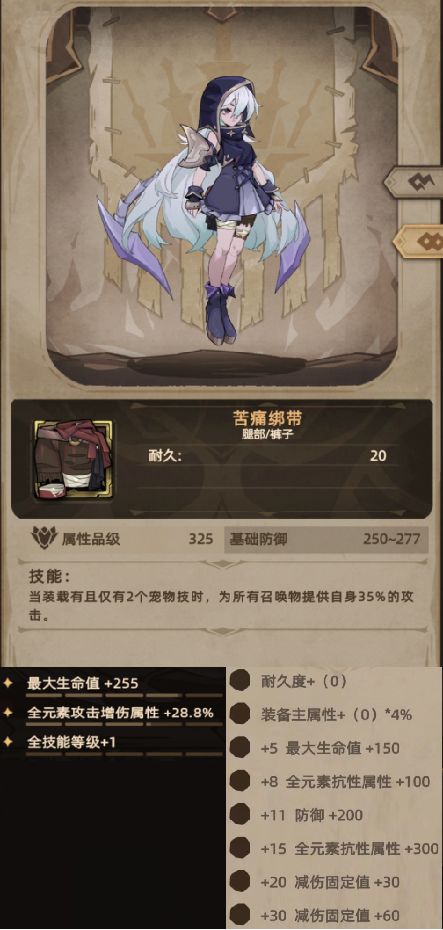 套装效果:召唤物攻击间隔降低、固定减伤、召唤物附加伤害(35%真伤)、25%最终伤害、【魂术牵引】强化。