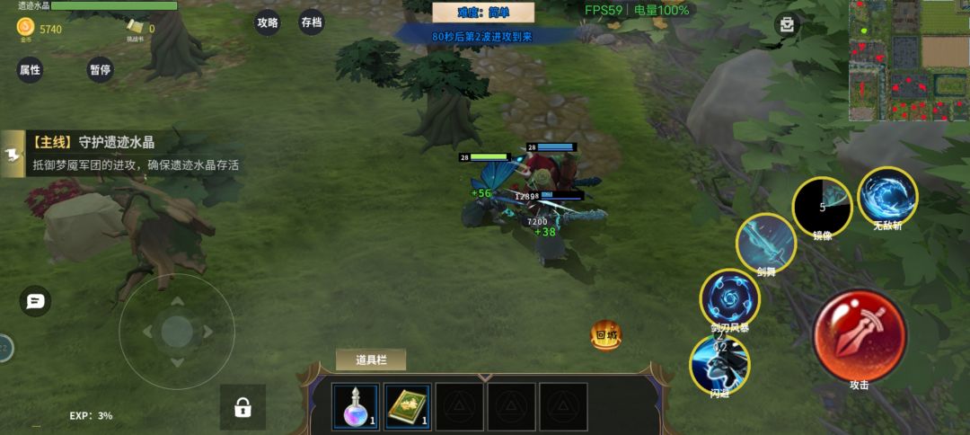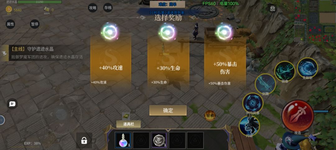 游戏开始,先把物品栏的包裹使用了,送一个普通装备。接着进右边地上的圈选择,进入→森林入口(练功房)打史莱姆升级到25级,然后走到左下方杀那个boss,掉突破书!拾取后快捷栏使用,有三个选择,攻速>攻击力>技能急速>暴击伤害!打完朝着右下角方向走还有一个觉醒boss,如果打突破boss省着大招(无敌斩)可以去消耗一下血量,先放分身,再开大招,最后旋风斩收割(天赋选攻击力情况下)
