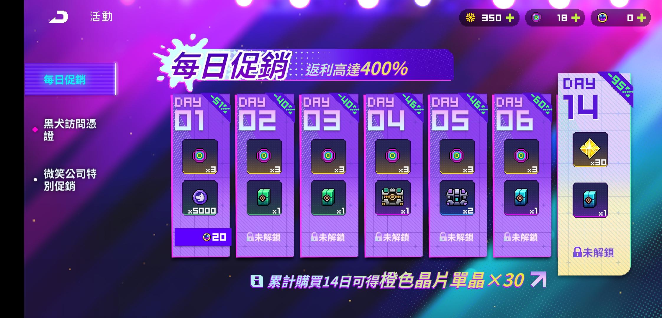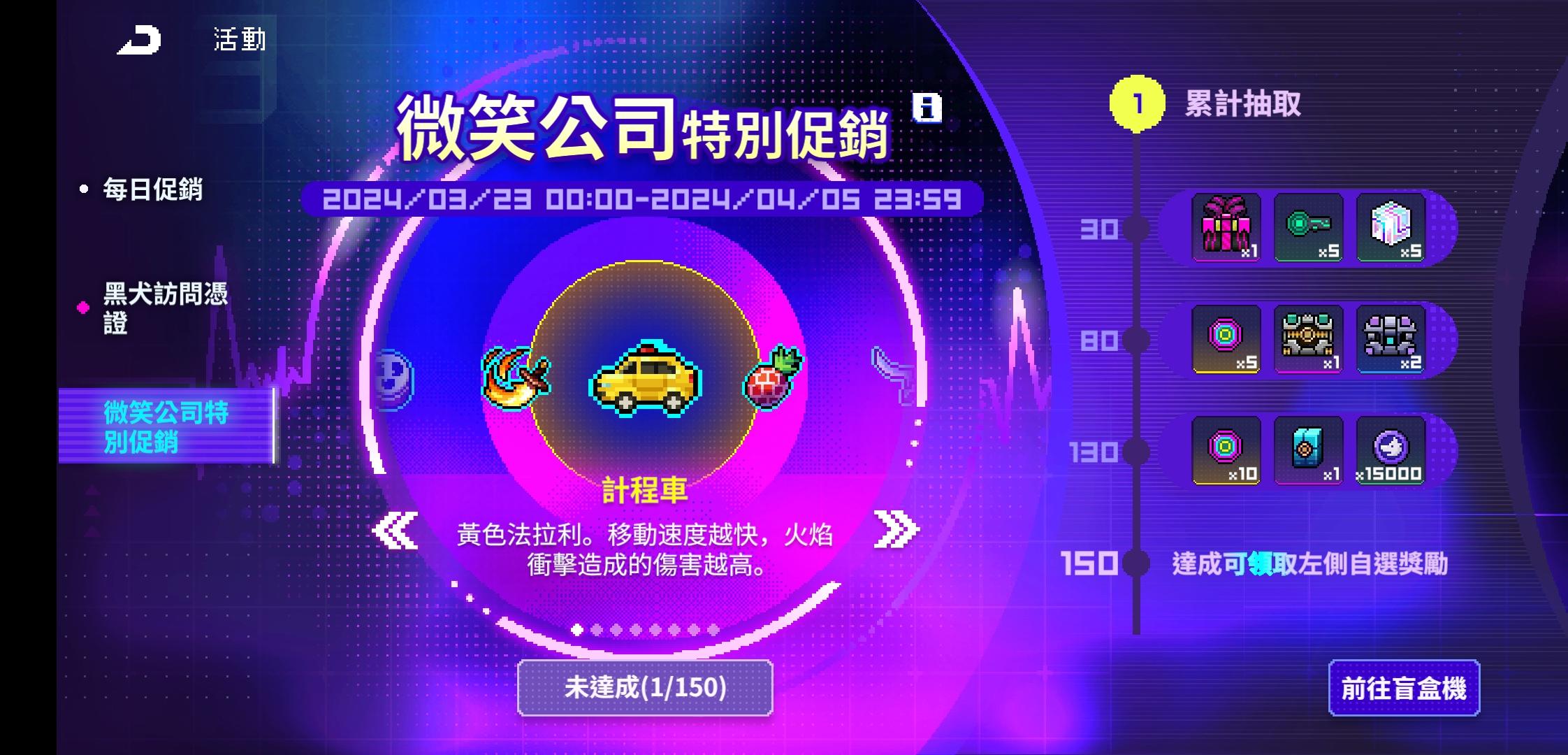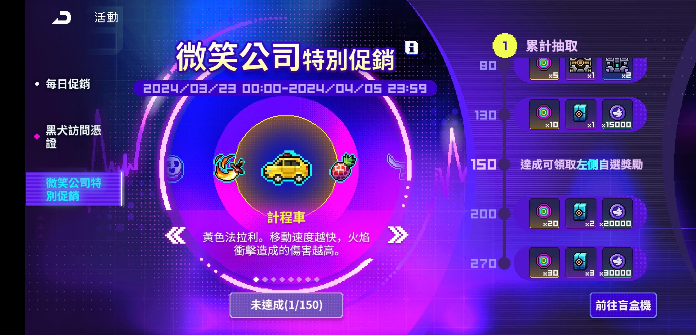 通过完成活动任务获取进度,B级送太阳币,A级解锁30元,只给霓虹币(没有人物),S级72元,给霓虹币和一个模组。