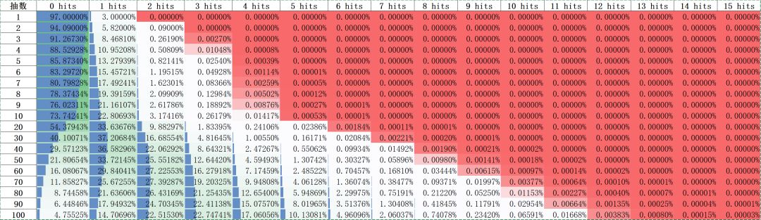 100抽统计模拟数据: