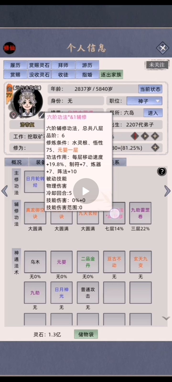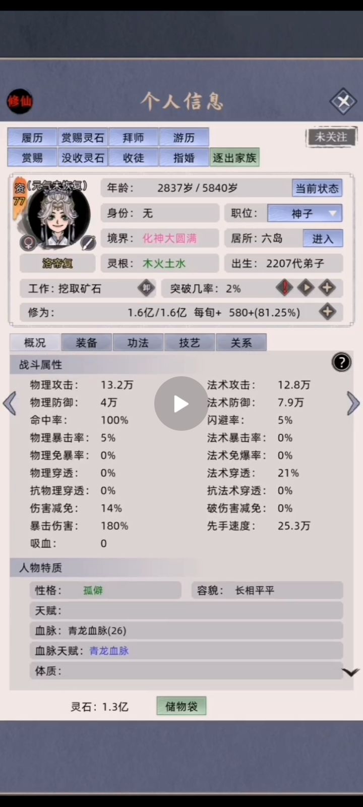 如图,无装备、无天赋、77资质化神,低配功法成功渡飞升劫