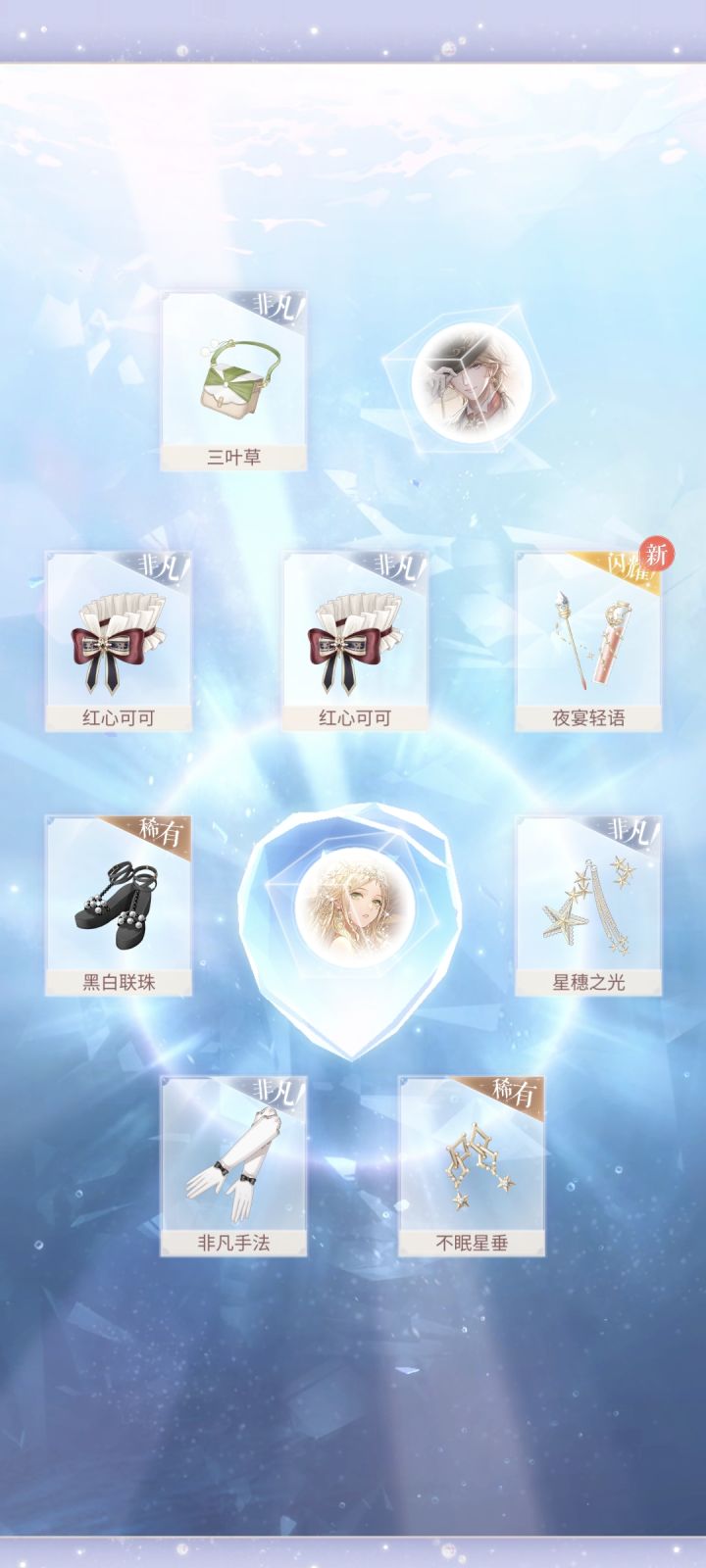 然后是之前我原来抽了120抽了(有卡有球),复刻又抽了100+幸亏留的钻多,我还以为有卡有球会很快复苏,会是我最欧的一个闪阁,最后还多了两个球,多么刺眼多么荒唐....不愿再碰单闪,如果不是因为喜欢链精,下次不是特别特别好看都不下单闪池了(虽然按照我的赌性不可能不下)