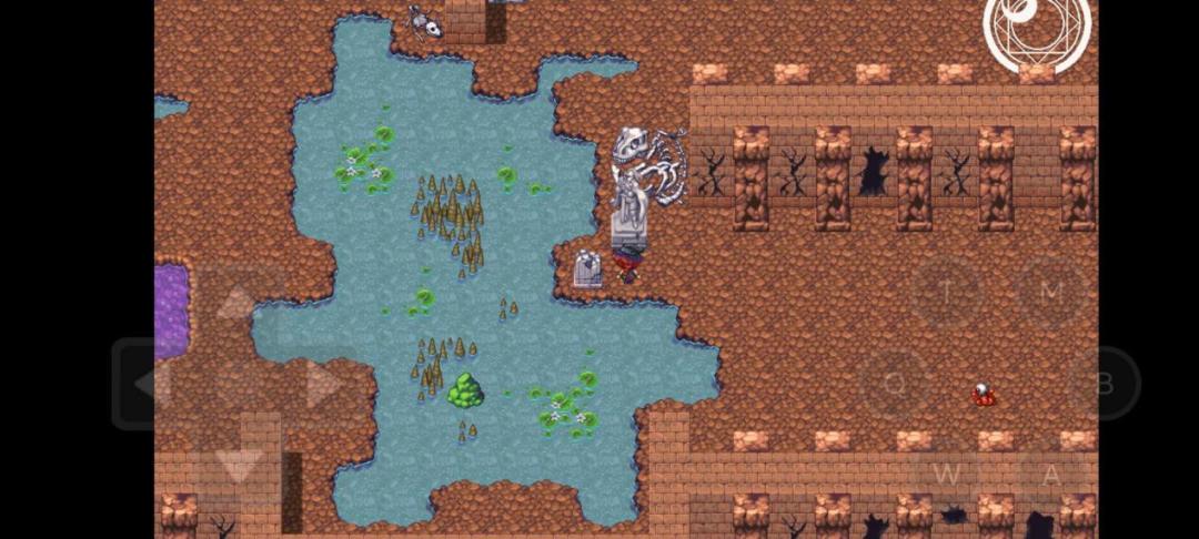 然后我们坐船来到坐标75.174上岸,上方的洞窟进入会感受到神兽的气息,和左上方的猪对话让我们去法米卡坑道找烈焰之水复活土神兽。