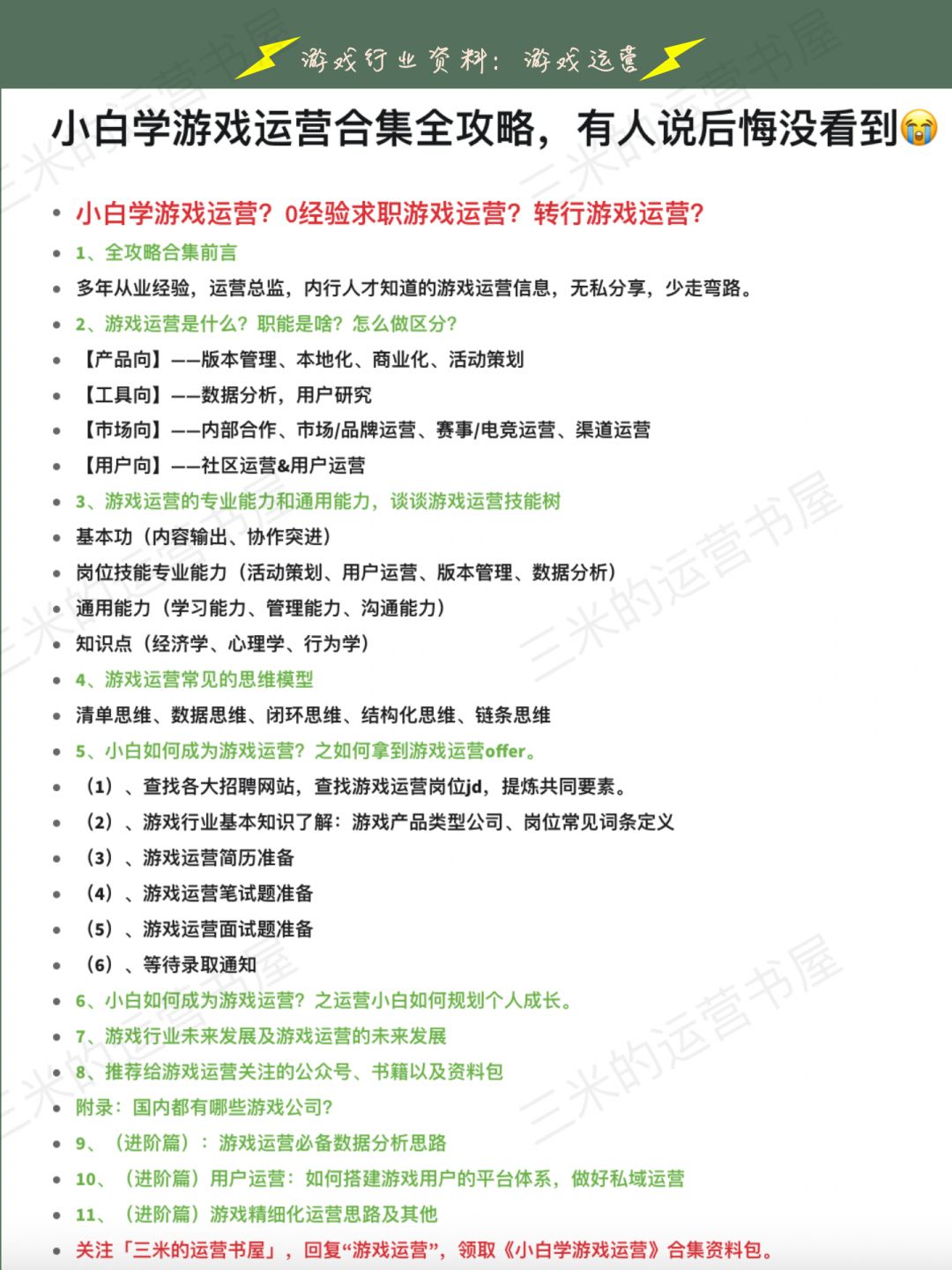 🔥游戏运营的思维我也写在《小白学游戏运营》合集里面了。完整报告合集找三米拿吧。