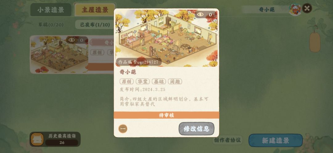 四级大屋的区域划分布置,已上传造景,大部分为常驻家具可替代,请随意发挥