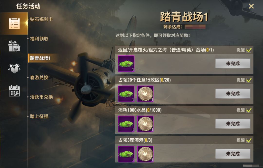 【踏青战场1】内达到任务指定条件,即可领取【踏青功勋、青团】等奖励;