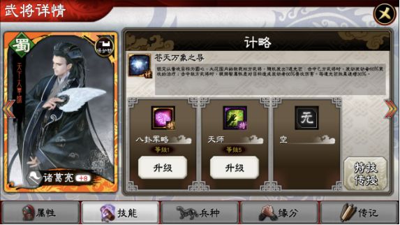 ⑤ 武将的三个特技槽位在突破8后会全部解锁,每个槽位都可被传授特技。
