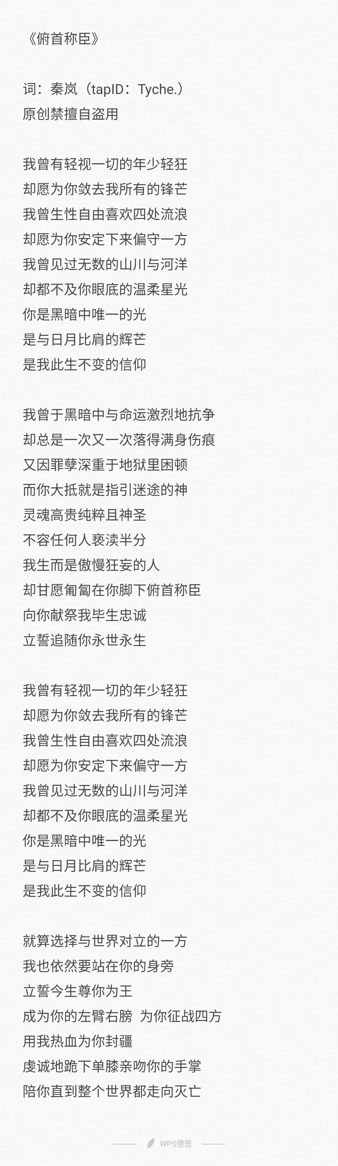 【原创歌词】俯首称臣