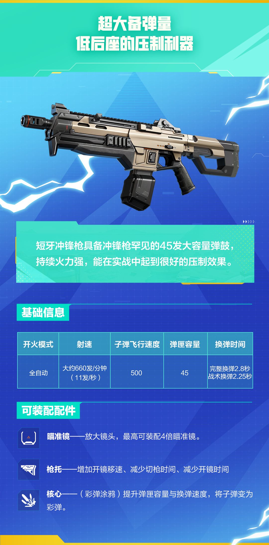 本期我们要介绍的主角,是备弹量极为优秀,持续火力超强的的近战重炮手——短牙冲锋枪!