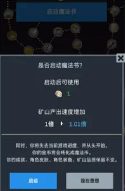 2、选择【启动】,花费魔法币开启魔法书;