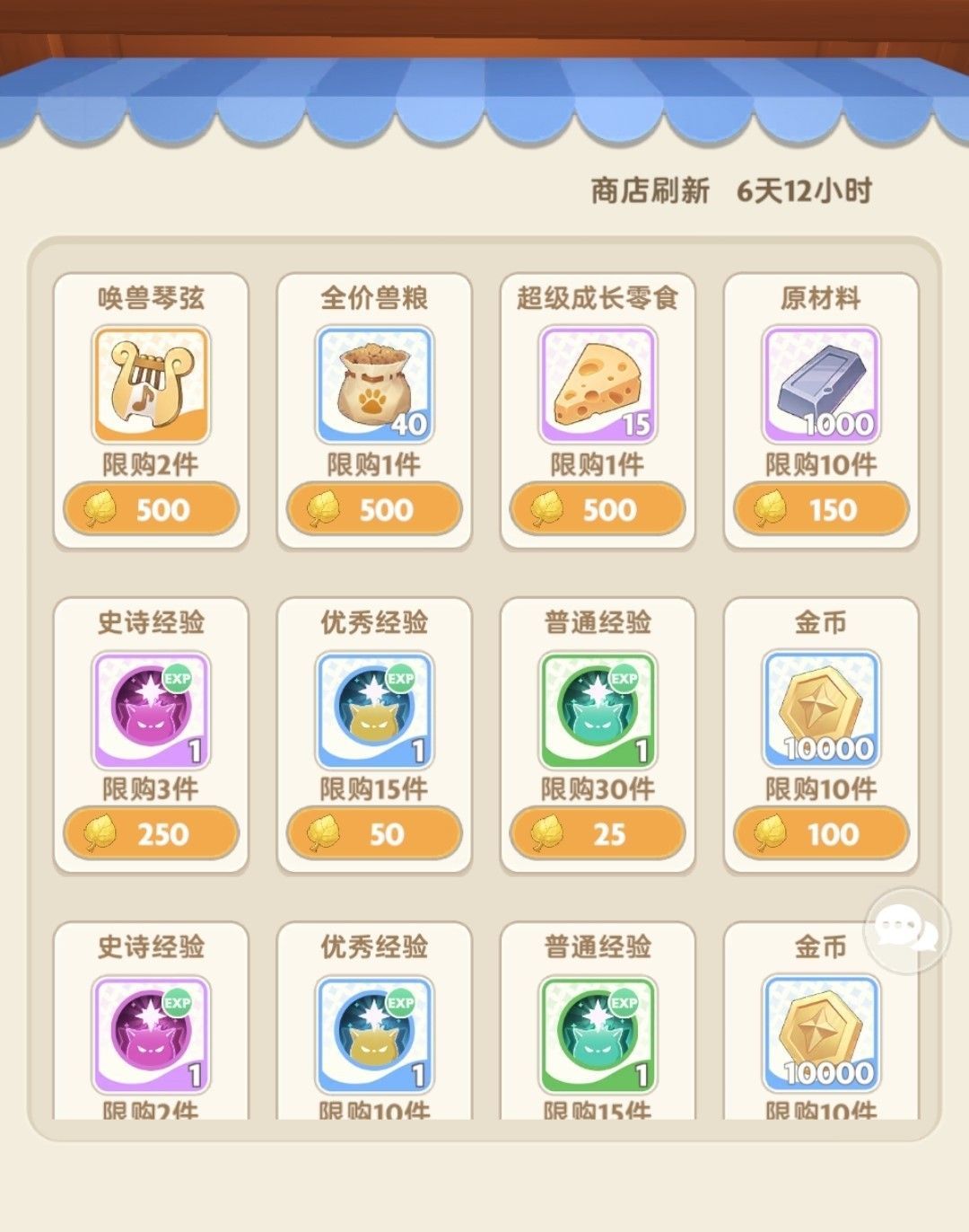 (旅团商店内可兑换资源会根据旅团等级的提升逐渐解锁,图中展示为较高旅团等级的商店界面)