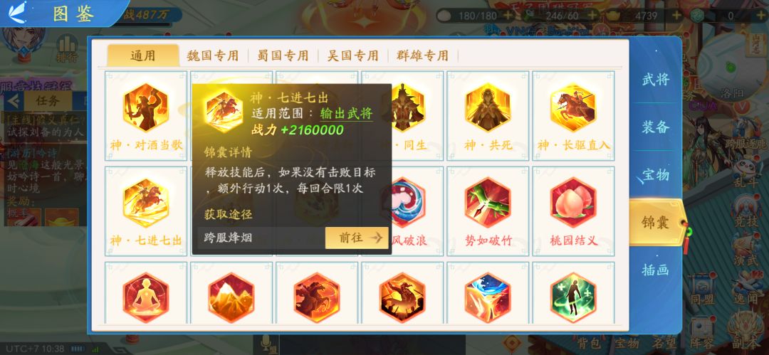 然后我还没有说完,如果你后面跨服烽火活动拍卖抢到金色锦囊七进七出(释放技能后如果没有单位死亡在次释放技能)给陆逊和周瑜带上,那是几次大招?