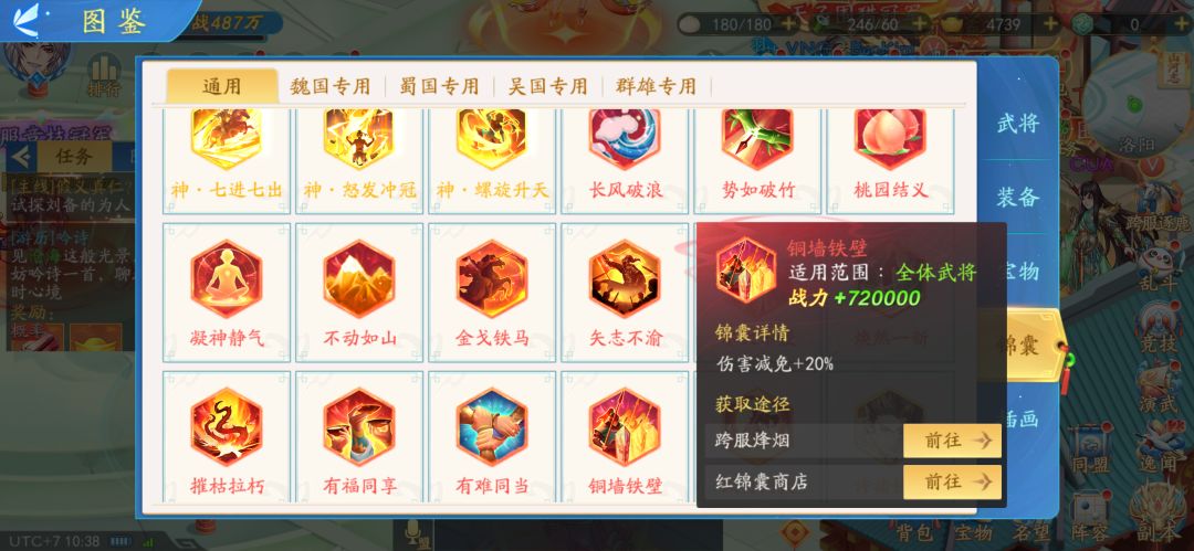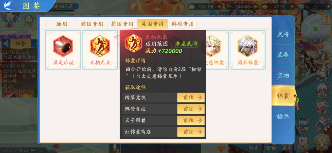 宝物白虎符10—宝物玄武符10—宝物朱雀符10—宝物青龙符10—宝物白虎符20—宝物青龙符20—宝物玄武符、宝物朱雀符20;宝物麒麟符对吴国来说没有用。