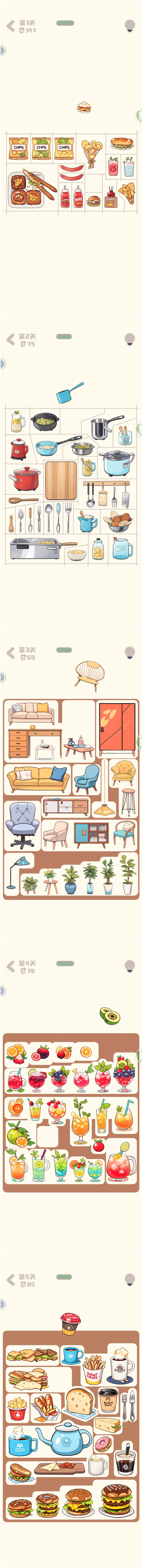 比较简单,但是里边的画风挺好看的,个别关卡比较难,会有两三个元素堆在同一个小格子里(这种我在图里做了备注)