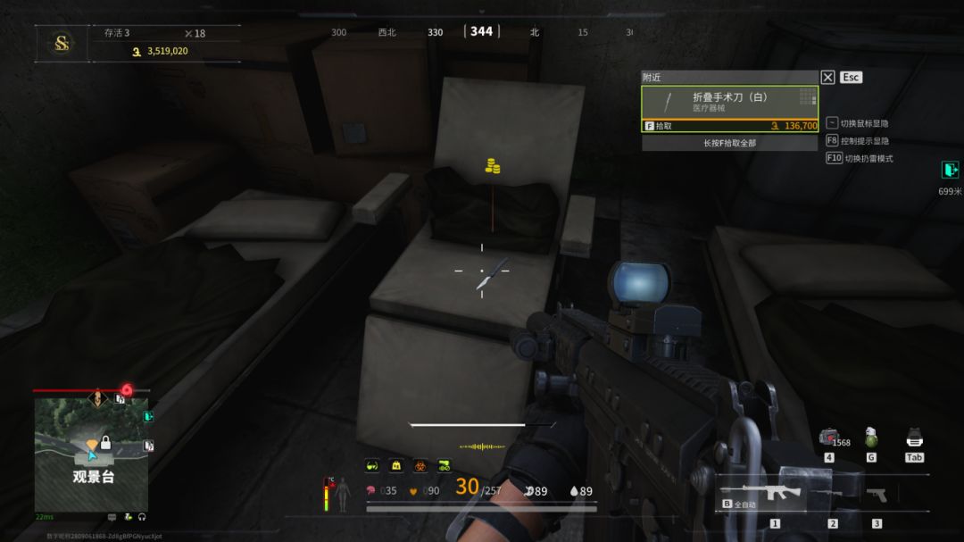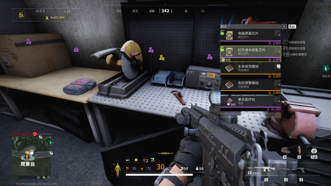 我们携带观景台密室钥匙可以打开看一下,这里会刷大量的芯片,防具,投掷物,子弹。开门的时候注意一下拌雷,保险箱可能会刷币子。