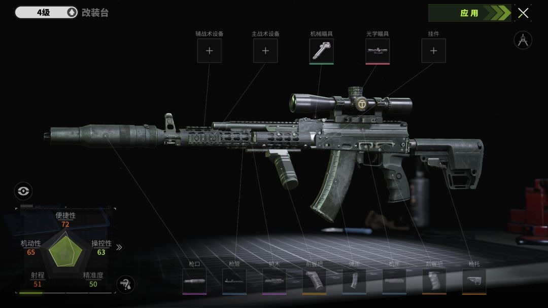 改装主要是改装盖板安装THEG4倍瞄准镜,其次可以改枪口PBS-4枪口消音器,然后就是任意护木配斜握把,最后需要改的是握把和枪托,这里只有倍镜是必要的,其余按照财力改装。