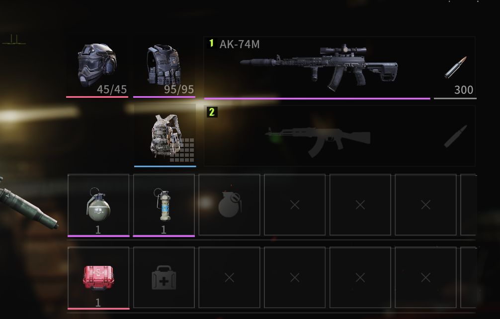 秋山是狙击手的天下,作战距离较远,容易被爆头秒掉,同时可搜索的区域距离较远,所以需要携带一把中远距离均可作战的武器。因此可以携带一把步枪或者连狙,比如AK-74M, SR-15,MIK2-15,SKS,SVDS等,比较推荐可以全自动设计的AK-74M,子弹携带4级80发备弹即可。(SR-15和MIK2-15射程较远,但只有半自动模式,需要熟悉后才可使用),选择枪械后,需要自行改造加上一个四倍瞄准镜,最好是物资镜。