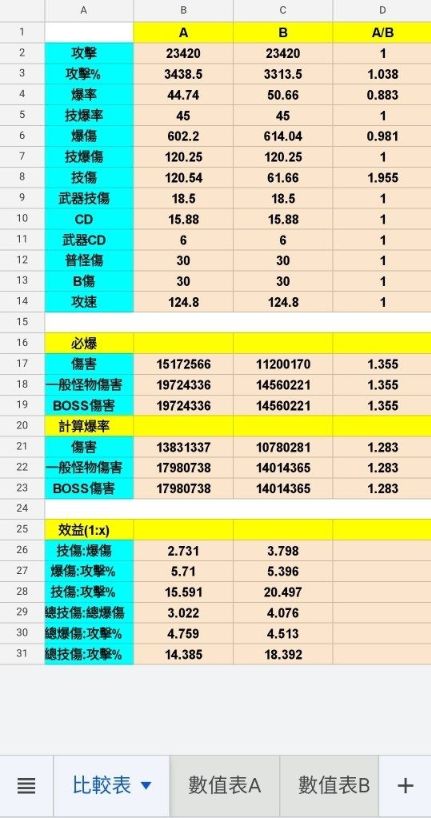 A表为技伤套 B表为双爆套