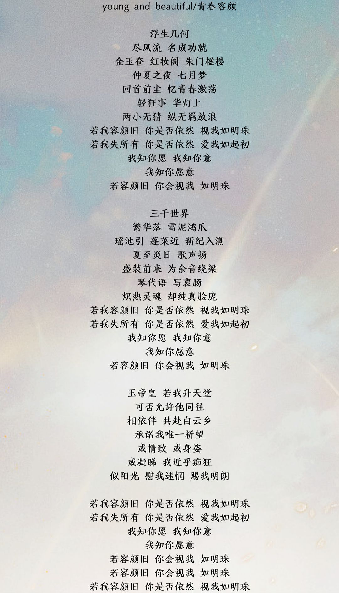 《young and beautiful》中文填词