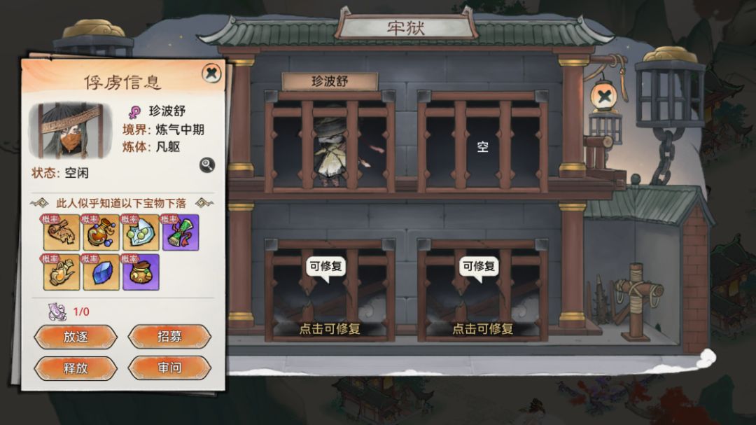 祖师可在世界地图抓获俘虏并将之打入牢狱,派遣镇狱长老看守。